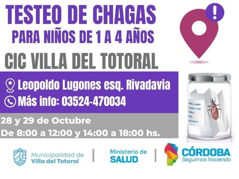 Jornadas de testeo gratuito de Chagas para niños y niñas en Villa del Totoral