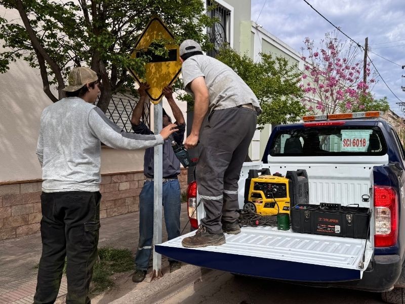 Recambio de cartelería y cambio de sentido de circulación en calle Diógenes Moyano