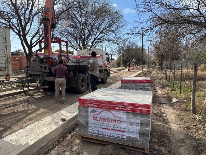 Avanza la obra de adoquinado en el boulevar La Loma: llegó la primera entrega de materiales