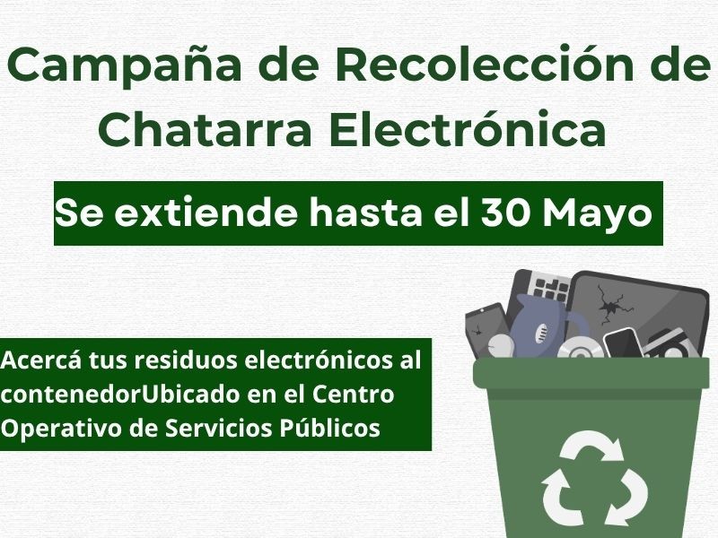 Se extiende hasta el 30 de mayo la Campaña de Recolección de Chatarra Electrónica en Villa del Totoral